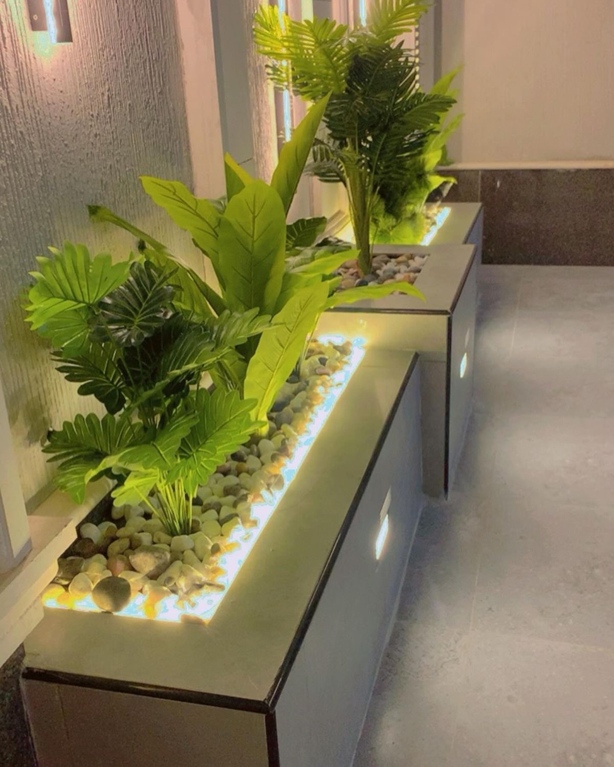 • توزيع النباتات بشكل استراتيجي: وضع النباتات بحيث تتناسب مع المساحات المحيطة وتضمن اخضرار مستمر.