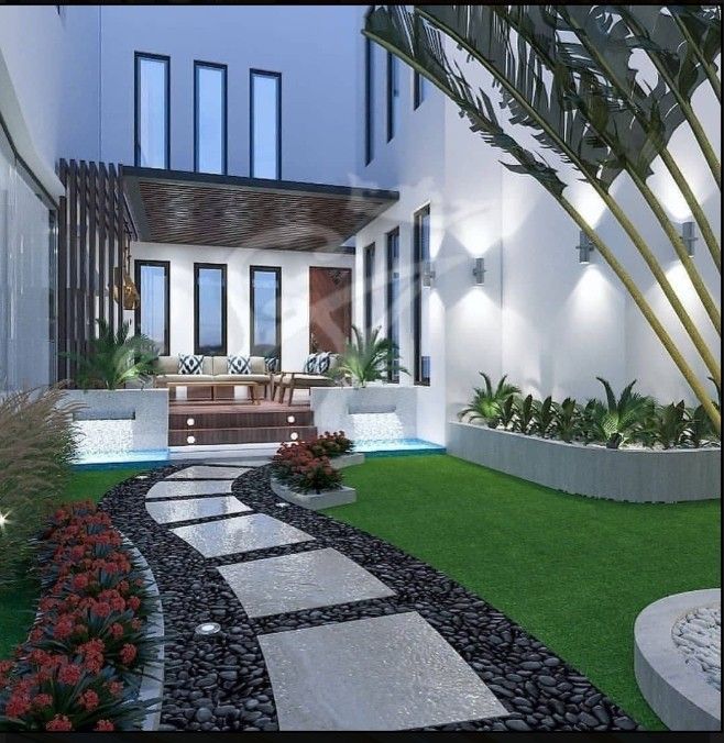 • المسطحات المائية: برك صغيرة أو شلالات تضيف لمسة هادئة للفضاء الخارجي.